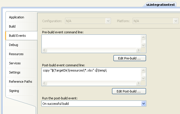 copy "$(TargetDir)\resources\*.xlsx" c:\temp\