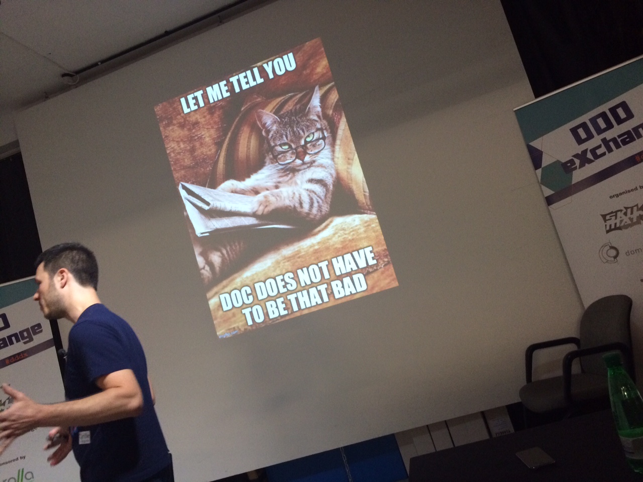 The rest of Cyrille’s talk focussed on how to create living documentation from your code! Using BDD, cucumber tests, diagrammr.com to create plain text diagrams. Starting to name your tests as Domain and Infra rather than Test. Use comments in your code to embed learning like links to particular patterns or concepts. Add a bounded context to your namespace, and tag your code for a glossary of terms.